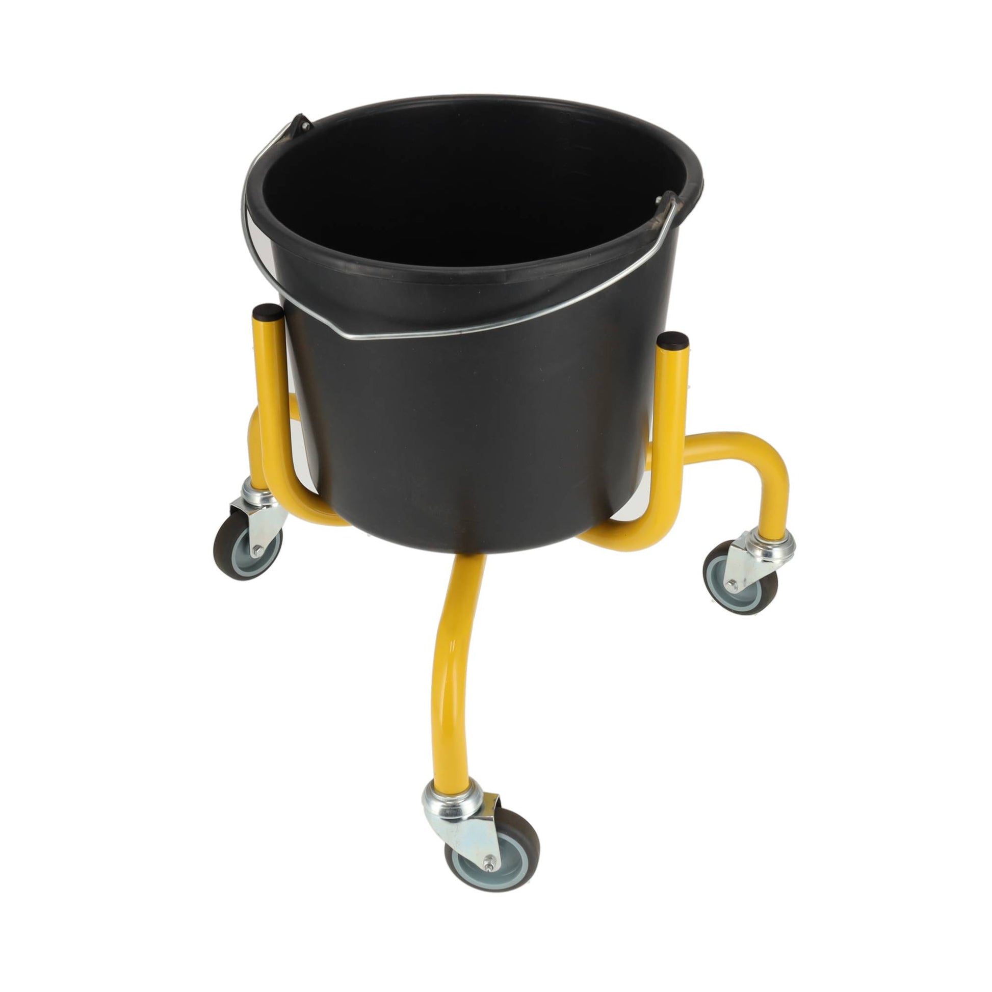 Deze emmerwagen is vervaardigd uit duurzaam staal met een 30 mm buisconstructie, voorzien van een slijtvaste gele poedercoating voor extra bescherming tegen slijtage en roest. De vier zwenkwielen (Ø50 mm) zorgen voor maximale wendbaarheid, waardoor de emmer eenvoudig kan worden verplaatst, zelfs op krappe werkplekken of oneffen ondergronden.