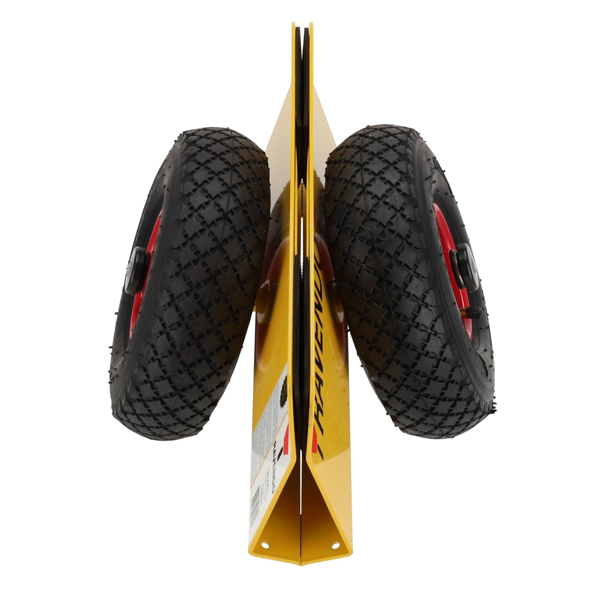 Het duurzame gelaste stalen frame met gele poedercoating garandeert een lange levensduur, zelfs bij intensief dagelijks gebruik. De pneumatische luchtbanden (Ø 300 mm) met stalen velgen en rollagers zorgen voor een soepele en stabiele verplaatsing, zelfs op oneffen terrein zoals bouwplaatsen. Met een draagvermogen van 200 kg en een licht gewicht van slechts 7,5 kg is dit transportkarretje zowel krachtig als handzaam in gebruik.