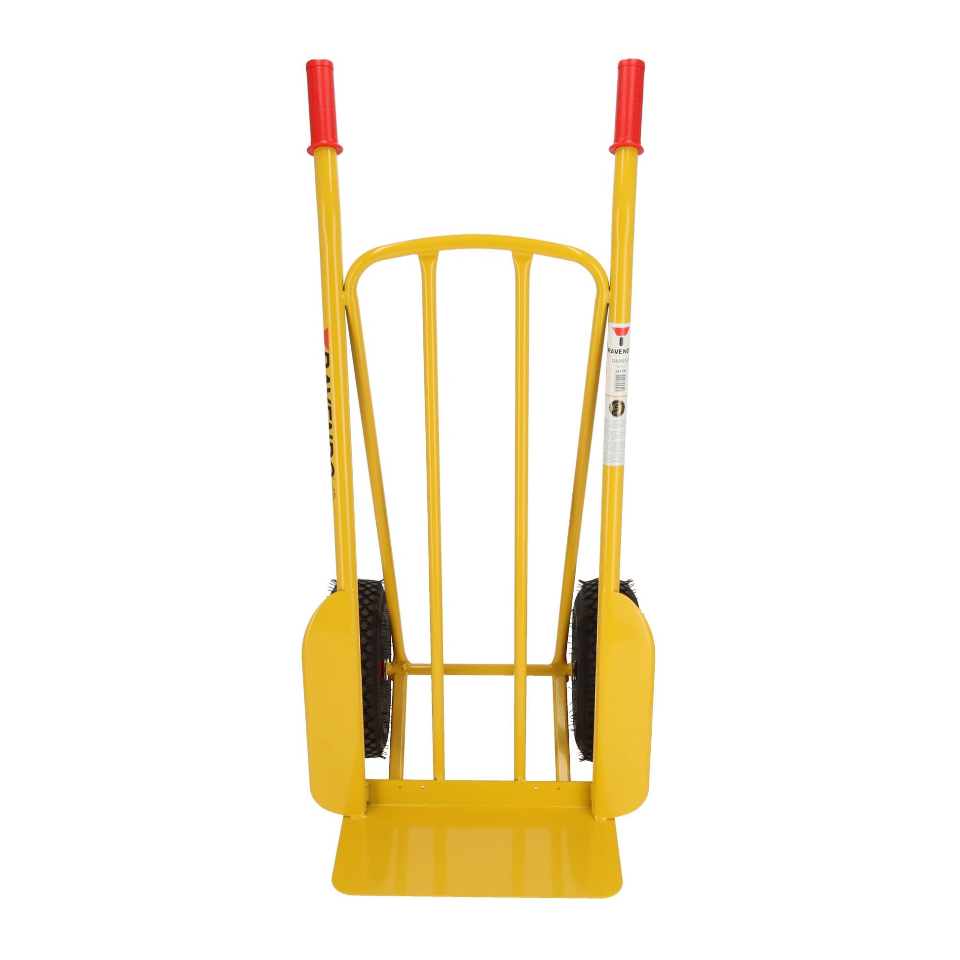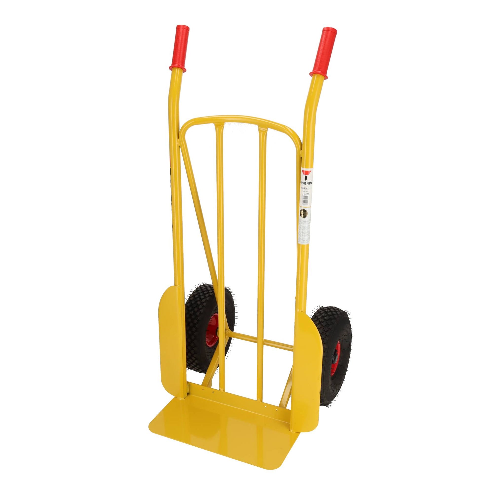 Het frame is gemaakt van 30 mm stalen buis, volledig gelast en afgewerkt met gele poedercoating, waardoor deze professionele steekwagen bestand is tegen intensief gebruik in magazijnen, bouwplaatsen en bij bezorgdiensten. Met een eigen gewicht van 14,4 kg is deze steekkar stevig maar toch goed hanteerbaar.