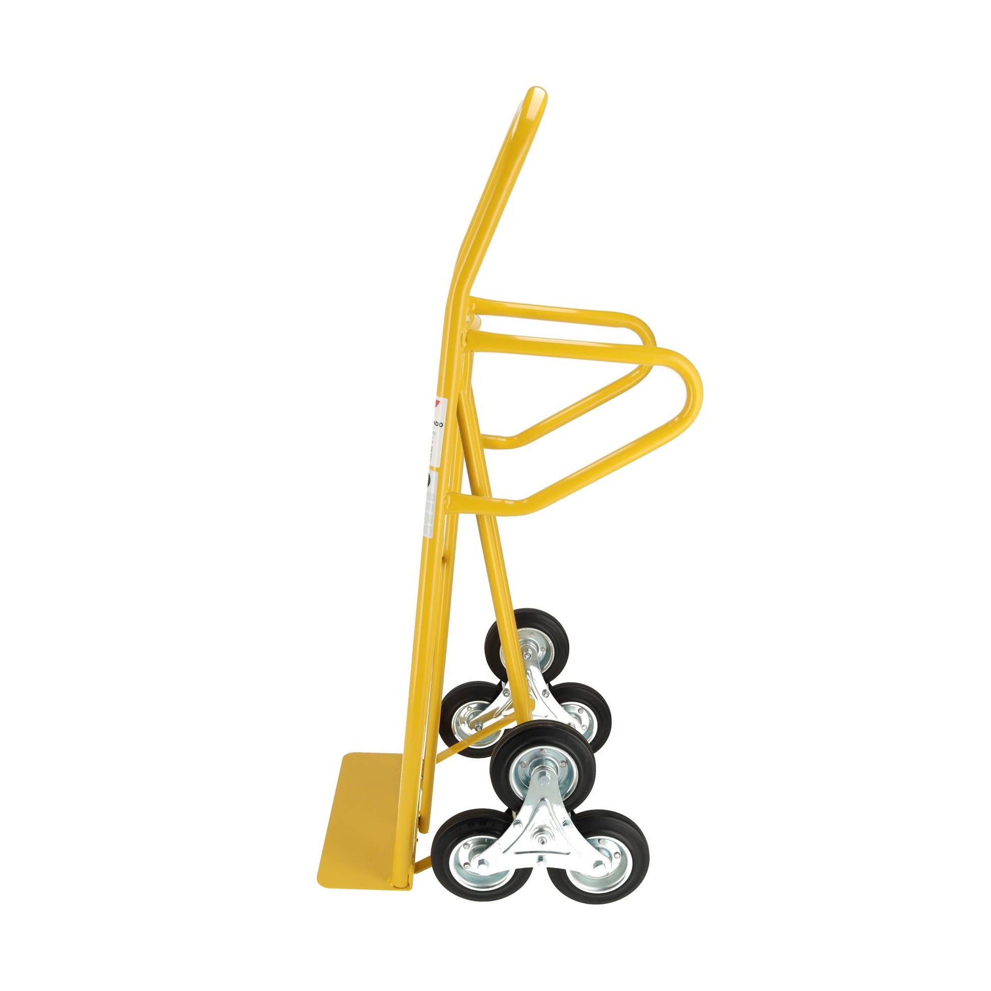 De massieve wielen (Ø160 x 40 mm) zijn gemonteerd op kunststof velgen met rollagers, wat zorgt voor een soepele en stabiele rit, zelfs bij maximale belasting. Met een eigen gewicht van 22,4 kg is deze trappensteekwagen zwaar genoeg voor stabiliteit, maar nog steeds goed hanteerbaar bij het manoeuvreren op trappen.