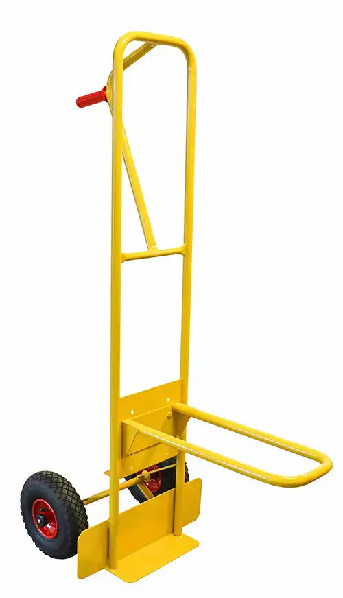 Met de achterwaarts gerichte handgreep geniet de gebruiker van verbeterd rijcomfort en optimale controle over de lading. Dit ontwerp maakt het manoeuvreren makkelijker, zelfs in krappe ruimtes. Het hoogwaardige stalen frame met gele poedercoating beschermt tegen roest en slijtage.