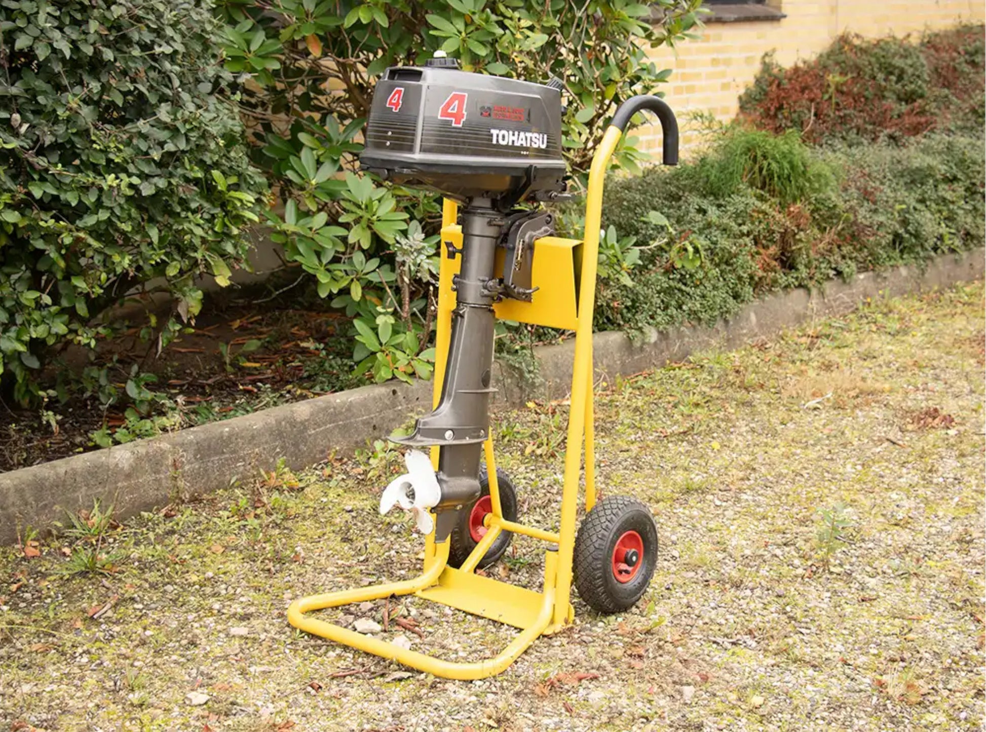 De duurzame poedercoating in geel beschermt het frame tegen slijtage en corrosie, zelfs in vochtige omgevingen. Met een eigen gewicht van slechts 9 kg is deze trolley licht en wendbaar, maar toch stabiel genoeg voor zware buitenboordmotoren.